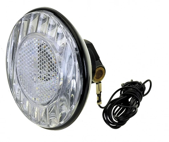 Head-Lamp, 6V/2.4W, 77 mm, black plastic, with reflector and cable, without approval number, OEM