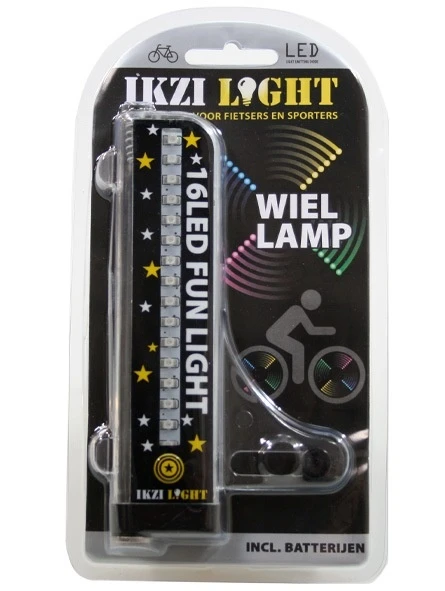 The Ikzi Light wheel light consists of 16 LEDs in 4 beautiful colors, this is easily clamped between the spokes.