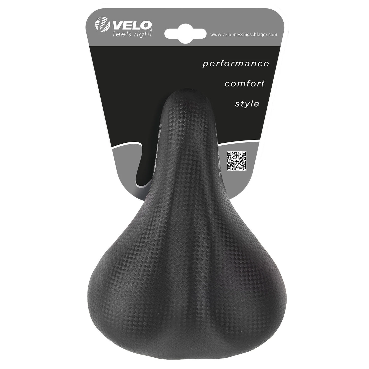 saddle VELO, for children/juniors (for 12″ + 16″ bikes), 206 x 153 mm, w/clamp, black, on card